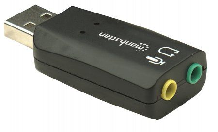 MANHATTAN Hi-Speed ​​USB 3D Sound Adapter is ideal for desktop PCs, laptops and netbooks, where he is on a USB port microphone input and audio output. Connect your headset, microphone or speakers via cable with 3.5 mm stereo plug, the connector is on the back often difficult to reach - you do not have this problem with this adapter. Plug & Play installation and hot-swap capability circumvent defective sound cards and audio ports and improve access without special drivers or software. A built-in power amplifier is powered directly via the USB port, which makes external power supplies or additional cables unnecessary. Support for 3D audio and virtual 5.1 surround sound and built-in sound effects with 10-band equalizer ensure rich, high-quality sound experience with USB convenience and functionality. - Provides microphone input / audio output to a USB port available - ideal for desktop PCs, notebooks and netbooks