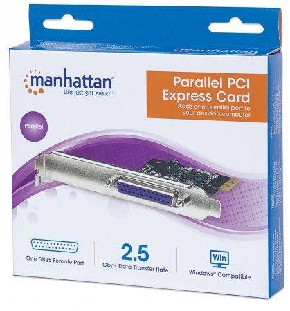 The MANHATTAN Parallel PCI Express Card fits PCI Express x1, x2, x4, x8 and x16 slots and is easy to install with plug and play. - Expands a PC's parallel port