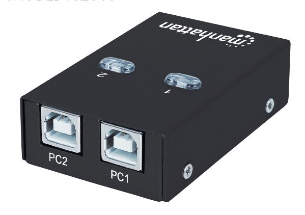 device, the MANHATTAN 2-port USB 2.0 switch enables comfortable parts of a USB peripheral between two PCs or notebooks - especially handy for sharing a printer, scanner, external hard drive and more. The routing is done easily either by on-screen menu or directly using the buttons on switch itself. Per Plug & Play installation is carried out in a jiffy. The necessary USB cable are included, driver or an external power supply are not required. - To divide a USB device between two computers