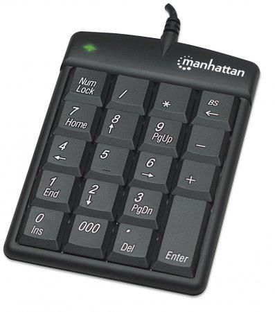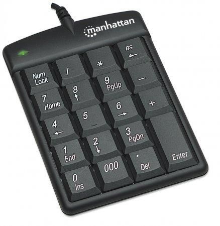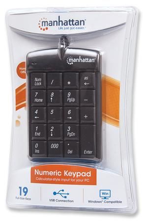 The keypad numbers MANHATTAN make use of the notebook much more comfortable, especially for numeric entries. The 19-key layout and the scissor-style (X-structure) technology reduce typing noise and make data entry fast and accurate. A backspace key allows quick fixes here. The asynchronous NumLock function works independently of the Notebook keyboard, you can simultaneously enter the letters and numbers on the normal keyboard number pad. USB port, plug and play installation and the ultra-thin, very light construction are ideal for use on the go. - 19 keys including backspace key