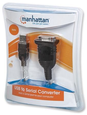Modern computers are equipped with RS232 ports Often, making the use of older peripherals and communication devices is difficult. The MANHATTAN USB to serial converter with extended its RS232 serial ports a single USB 1.1 port to a port for serial modems, barcode scanners, digital cameras, card readers and other devices. manufacturing quality and easy installation gold plated contacts and rugged design allow reliable connection between computer and serial peripherals for consistent, trouble-free performance. compatibility with Windows Plug & Play installation and hot -swap capability offers stable use without frustrating device conflicts. - Extends to a USB port to RS232 port - For connecting modems, PDAs, digital cameras, and other serial devices to the USB port - Windows compatible - Plug &Play; Hot-swappable - 10 Years Warranty Standards and Certifications - CE - FCC - USB 1.0 - USB 1.1 - RoHS - WEEE