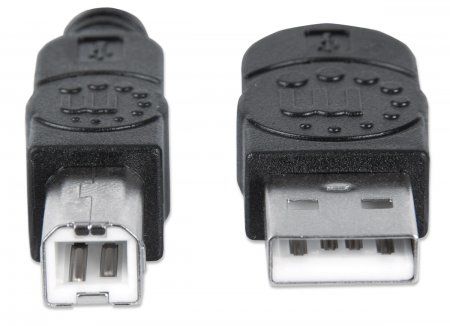 MANHATTAN Hi-Speed ​​USB 2.0 cable to easily connect USB peripherals and accessories with PCs and notebooks. Ideal for the use of USB-enabled drive enclosures, hubs and other Hot-Swap/Plug & Play devices. MANHATTAN Hi-Speed ​​USB 2.0 cables support high data transfer rates up to 480 Mbit / s. To Windows and MAC systems for fast, reliable transmissions Gold plated contacts, shielding, and PVC molded boots with strain relief ensure the best connectivity and trouble-free operation without data loss. - USB 2.0 Standard-A male to USB 2.0 Standard-B connector