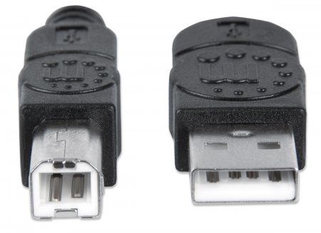 MANHATTAN Hi-Speed ​​USB 2.0 cable to easily connect USB peripherals and accessories with PCs and notebooks. Ideal for the use of USB-enabled drive enclosures, hubs and other Hot-Swap/Plug & Play devices. MANHATTAN Hi-Speed ​​USB 2.0 cables support high data transfer rates up to 480 Mbit / s. To Windows and MAC systems for fast, reliable transmissions Gold plated contacts, shielding, and PVC molded boots with strain relief ensure the best connectivity and trouble-free operation without data loss. - USB 2.0 Standard-A male to USB 2.0 Standard-B plug