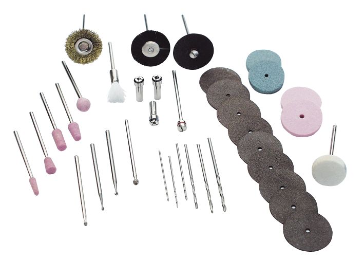 - 2 mandrels for 9 cutting discs (0.7x22 mm Ø )