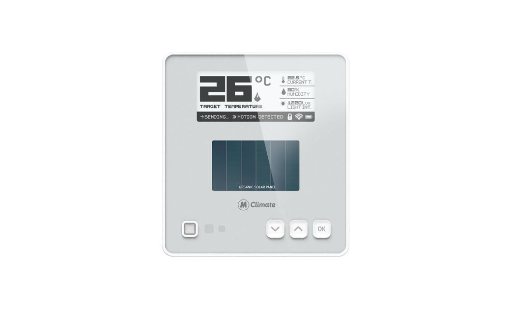 MClimate CO2 Display LoRaWAN is a stand-alone CO2 sensor powered entirely by solar energy using an organic solar panel. The device features a 7,4 cm ( 2,9 inch ) e-ink screen, sensor for movement (PIR), temperature and humidity sensor, LUX sensor and NDIR CO2 sensor. The user can see the current levels of CO2 as well as historical trend. The device sends an uplink when it detects movement as well as periodically. The data from the CO2 Display can be used in any LoRaWAN-compatible system, including Building Management Systems to control demand-based ventilation Sensor information can be exposed as datapoints in Modbus, BACnet and KNX systems through the use of a special gateway.
