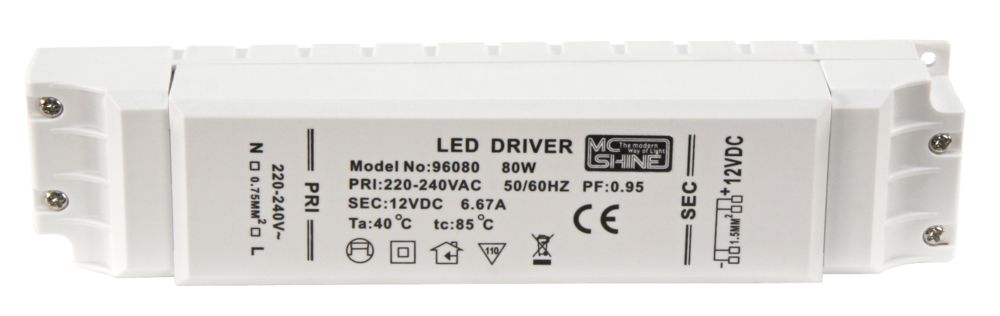 LED transformer McShine, electronic, 1-80 W, 220-240 V -> 12 V, 220x48x40mm