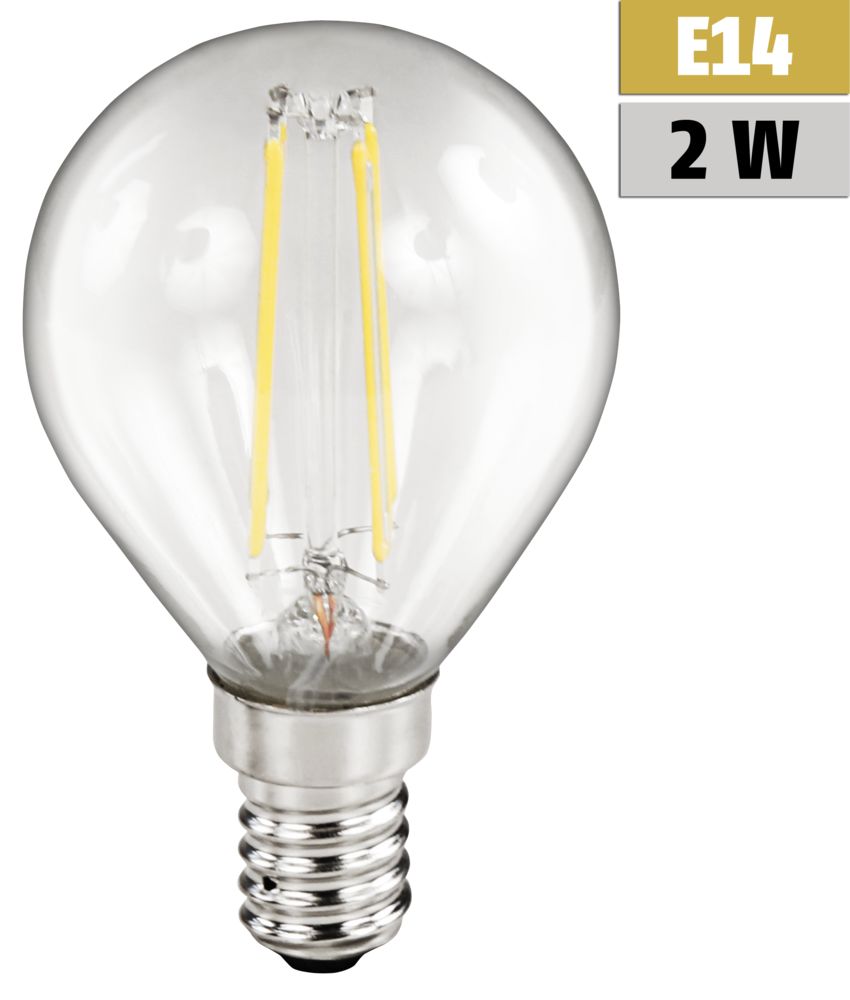 LED filament drop lamp McShine ''Filed'', E14, 2W, 200 lm, warm white, clear