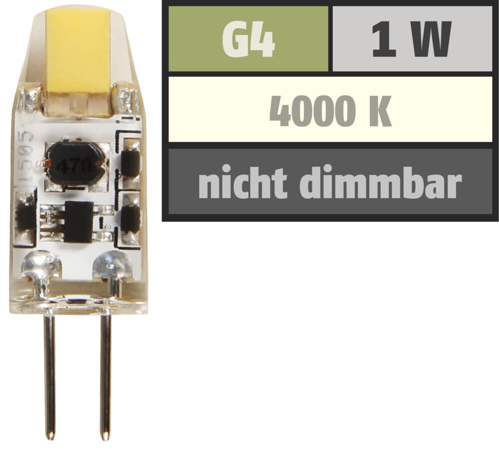 The article McShine ''Silicia COB'' LED pin base lamp, G4, 1W, 110 lm, white is currently in stock