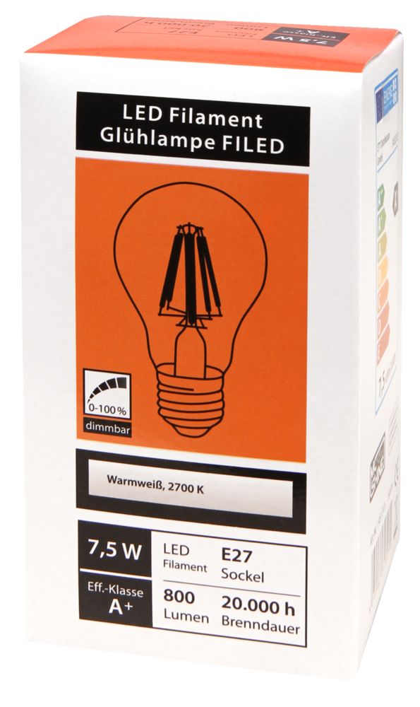 In addition, you can save money with our attractive graduation prizes with every purchase. If you buy a minimum of 50 pieces of LED filament bulb McShine ''Filed'', E27, 7.5W, 800 lm, warm white, dimmable, clear we can offer you a price of 4,42 EUR per piece. The more you buy, the cheaper the article will be.