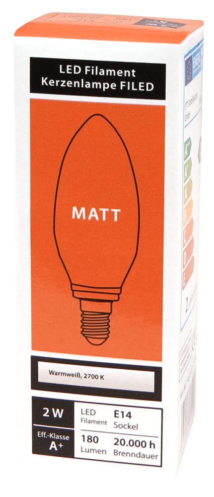 In addition, you can save money with our attractive graduation prizes with every purchase. If you buy a minimum of 50 pieces of LED filament candle lamp McShine ''Filed'', E14, 2W, 180 lm, warm white, matt we can offer you a price of 2,83 EUR per piece. The more you buy, the cheaper the article will be.