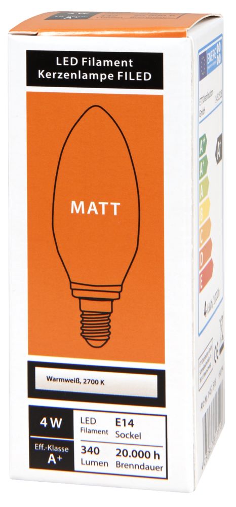 In addition, you can save money with our attractive graduation prizes with every purchase. If you buy a minimum of 50 pieces of LED filament candle lamp McShine ''Filed'', E14, 4W, 370 lm, warm white, matt we can offer you a price of 3,39 EUR per piece. The more you buy, the cheaper the article will be.
