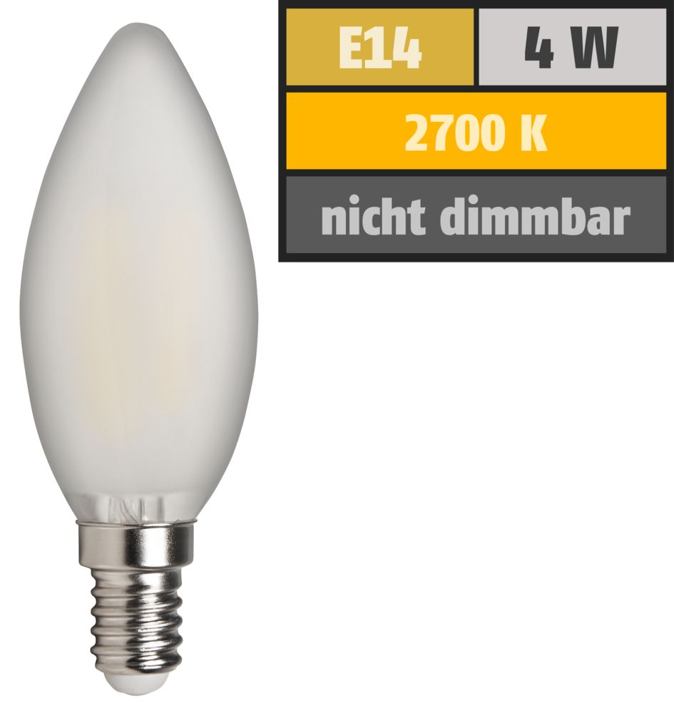 LED filament candle lamp McShine ''Filed'', E14, 4W, 370 lm, warm white, matt