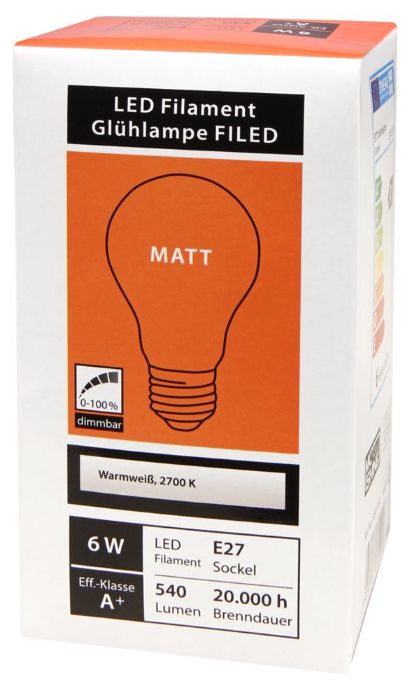 In addition, you can save money with our attractive graduation prizes with every purchase. If you buy a minimum of 50 pieces of LED filament bulb McShine ''Filed'', E27, 6W, 540 lm, warm white, dimmable, matt we can offer you a price of 4,19 EUR per piece. The more you buy, the cheaper the article will be.