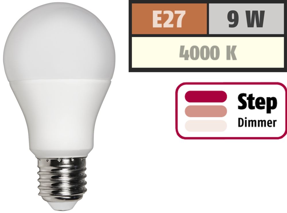 LED light bulb McShine, E27, 9W, 810 lm, 4000K, neutral white, step dimmable 100/50/10%