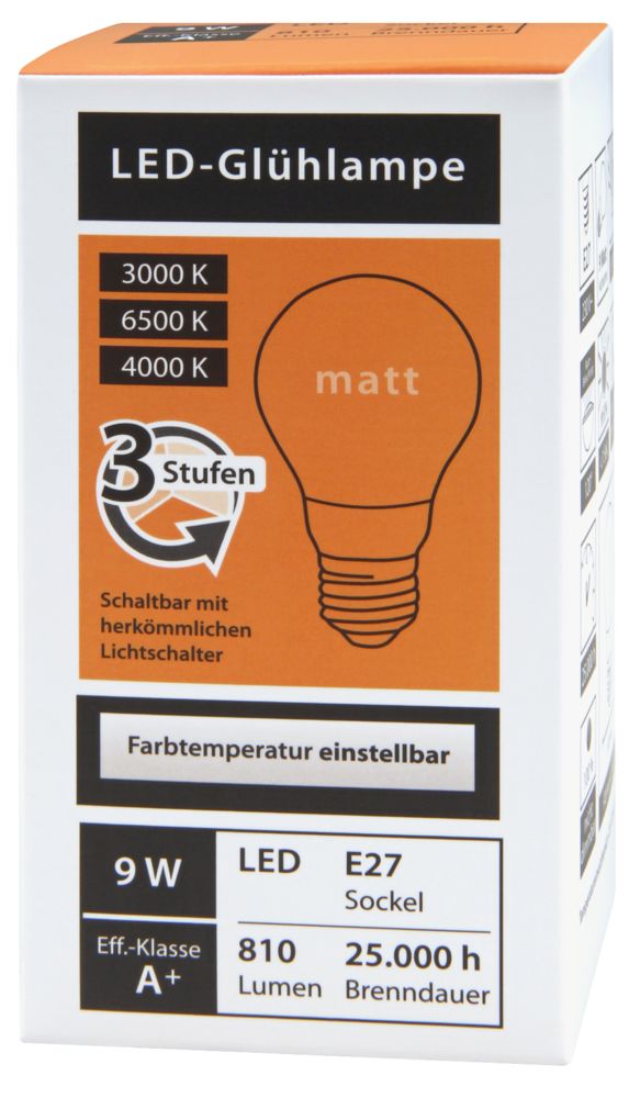 McShine LED light bulb, E27, 9W, 810 lm, color changing 3000K/6500K/4000K