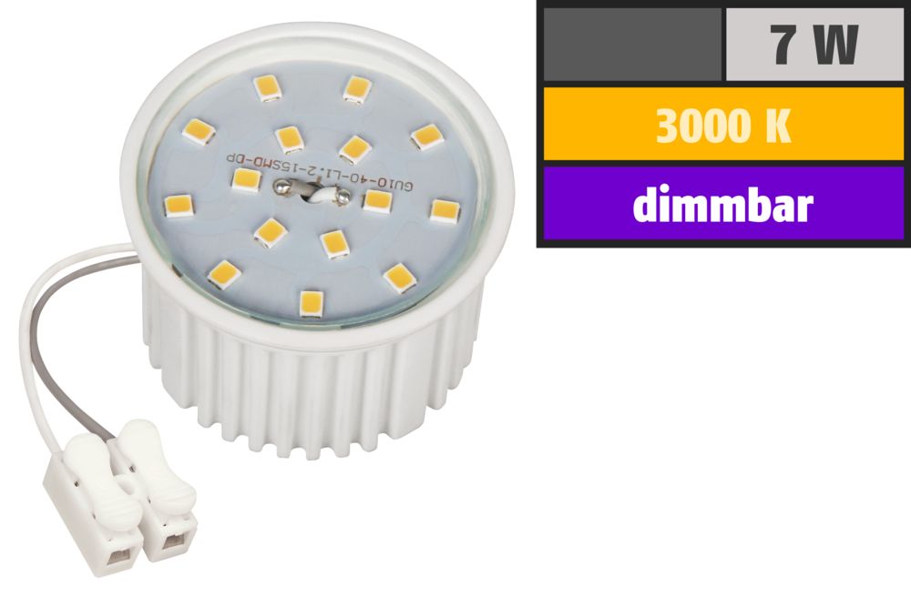 The article LED module McShine, 7W, 510 lumens, 230V, 50x33mm, warm white, 3000K, dimmable is currently in stock