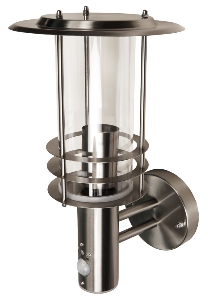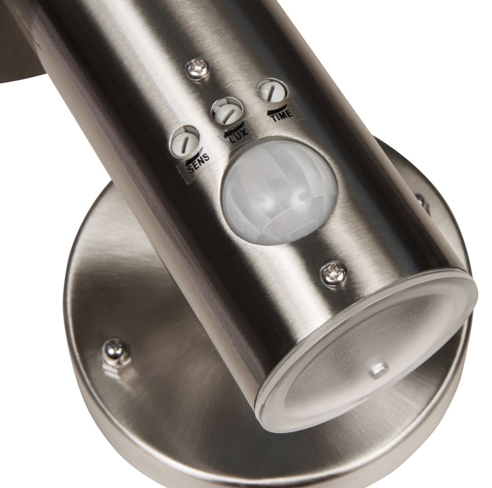 Wall light McShine ''Cylinder'' stainless steel, IP44, 1x E27, motion detector