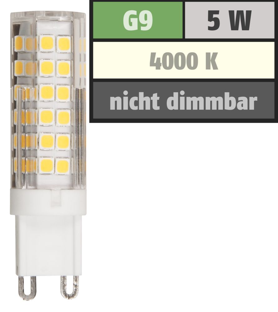 The article LED pin base lamp McShine, G9, 5W, 520lm, 4000K, neutral white is currently in stock