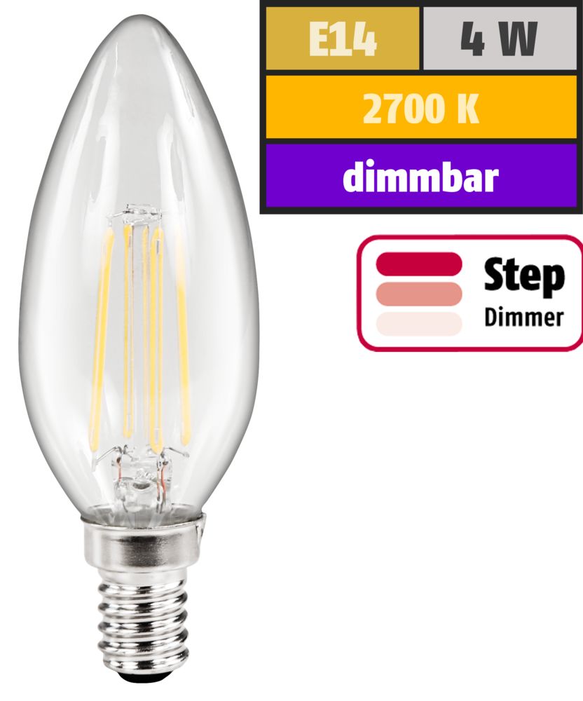 LED filament candle lamp McShine ''Filed'', E14, 4W, 440lm, warm white, step-dimmable