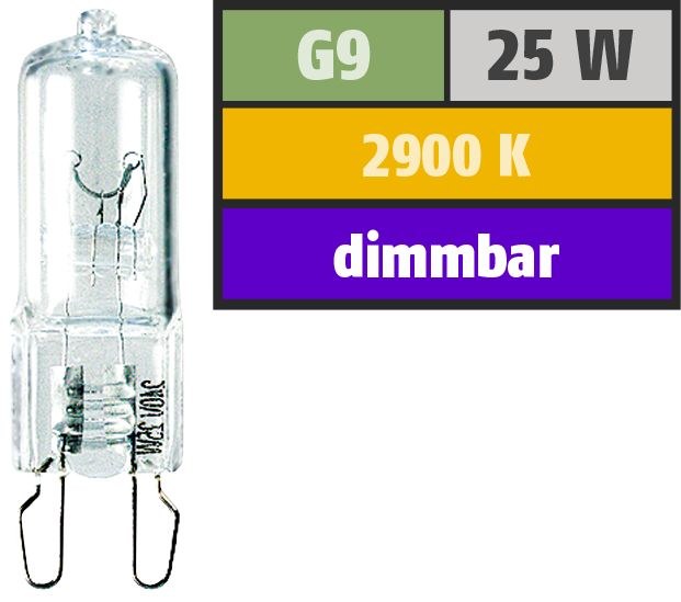 The article Halogen pin base lamp McShine, 230V / 25W, G9 base, 2,000h, clear is currently not in stock und muss auftragsbezogen bestellt werden.