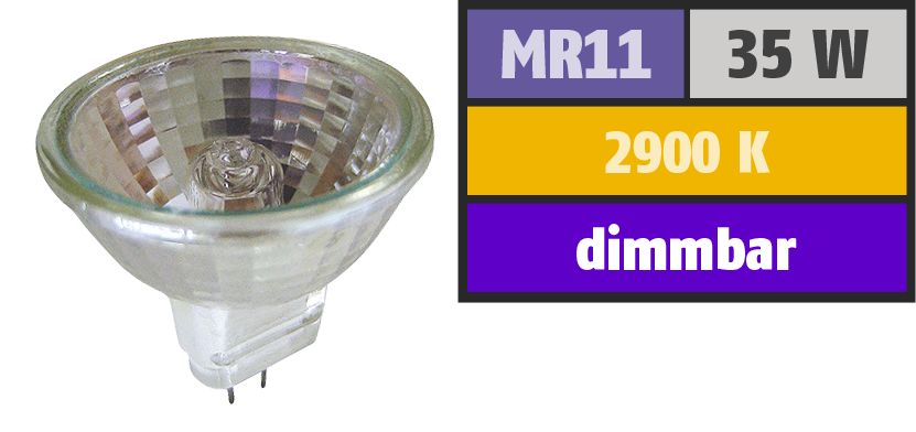 We offer you Halogen mirror lamp McShine, MR11, 35 mm Ø, 12 V/35 W, 30°, front glass always at the best possible price. We can give you a discount of 2% on Halogen mirror lamp McShine, MR11, 35 mm Ø, 12 V/35 W, 30°, front glass if you choose payment in advance on ordering.