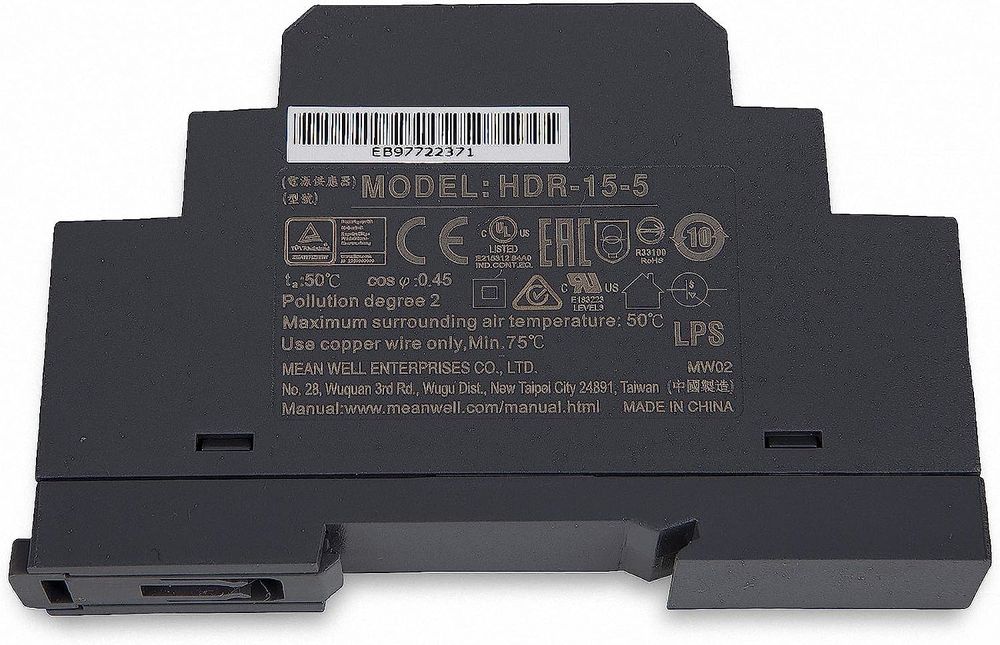 The article Meanwell HDR-15-5 ALLNET Ersatznetzteil - 5V / 2,4A 12W Mean Well Hutschiene is currently in stock
