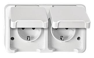 Merten MEG2320-8019 SCHUKO-Double plug, socket polar white horizontal. m.BRS AQUASTAR