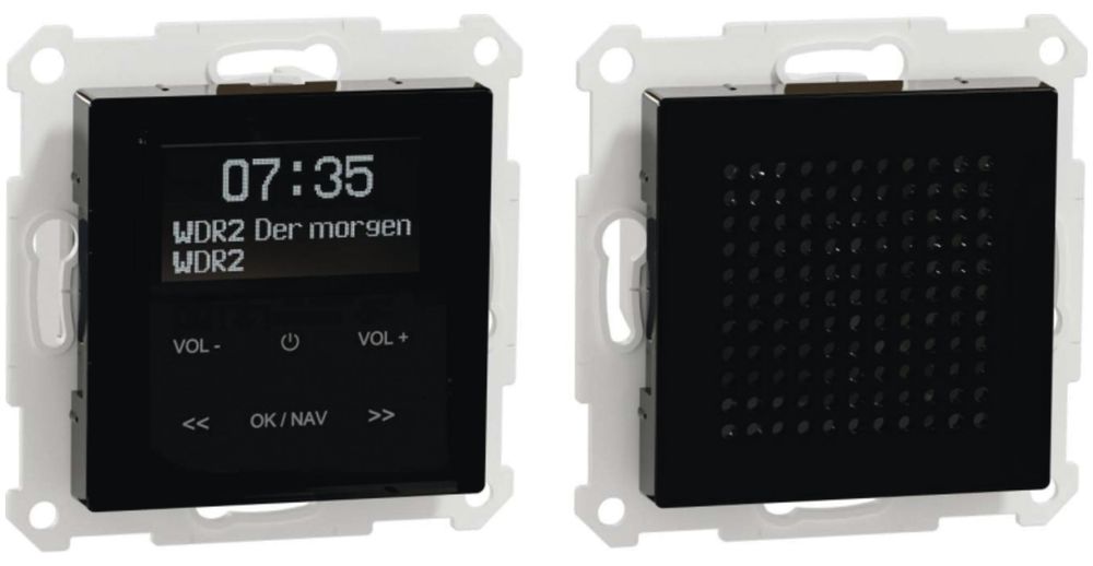 We offer you Merten MEG4375-0303 DAB+Radio Set with Bluetooth with Speaker Color Black always at the best possible price. We can give you a discount of 2% on Merten MEG4375-0303 DAB+Radio Set with Bluetooth with Speaker Color Black if you choose payment in advance on ordering.