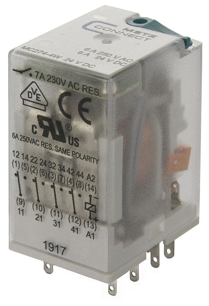 The article Metz Connect 110017251407 BTR Relay 274 24VDC 4We LED industrial relay pluggable is currently in stock