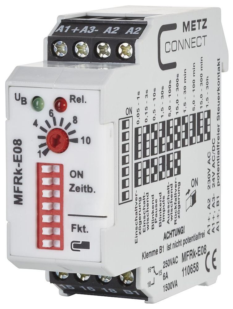 Metz Connect 110658 BTR MFRKE08 multifunction time relays, 230VAC 24VAC/DC 1WE 30h