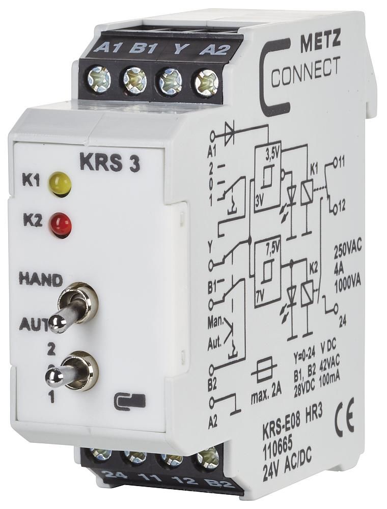 Metz Connect 110665 BTR KRS-E08 HR3 24VAC/DC with manual operating level threshold value. 0V/5V/10VDC
