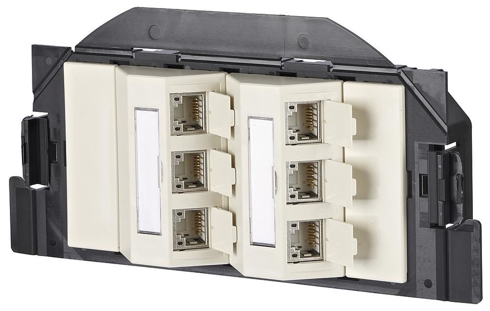 - Integrated dust cover - color, mounting boxes: black, cover parts: pearl white E-DAT subway 6x8 (8) GB2 Version: Cat. 6 pearl white RAL