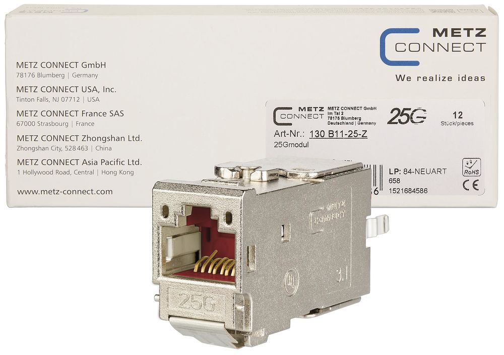 Metz Connect 130B11-25-Z BTR MC 25G-net Jack (VE:12) 25G module is offered by us in a sales unit of 12 pieces If you need a larger quantity, you can contact us at any time. We will make a special offer for you