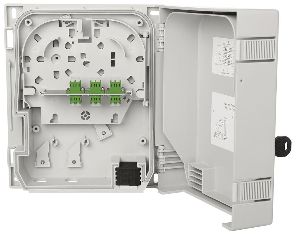 .Splice cassette for easy assembly and maintenance with the greatest possible protection of the fibers with crossover option and storage for excess fiber lengths