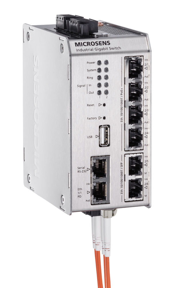 The Full Gigabit Industrial Switch with PoE+ from MICROSENS delivers a high-performance, compact, and fail-safe networking solution for industrial applications: