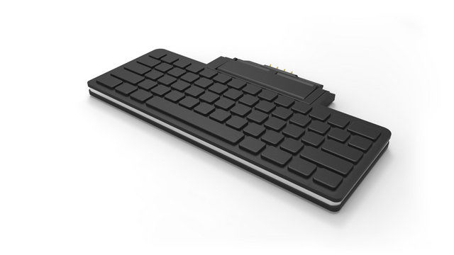 keyboard with QWERTY keyboard layout, magnetic connection to the terminal, no separate power supply, batteries or cables required, powered through the terminal
