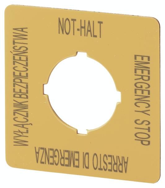 Moeller 167643 EATON M22-XYK5 sign EMERGENCY STOP 50x50mm yellow PL EN DE IT