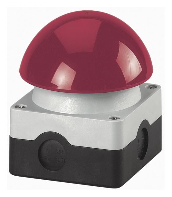 Housing bottom part black (RAL 9005), light gray upper housing (RAL 7035). Opener with safety function by positive opening to IEC / EN 60947-5-1. Mushroom head in black or red