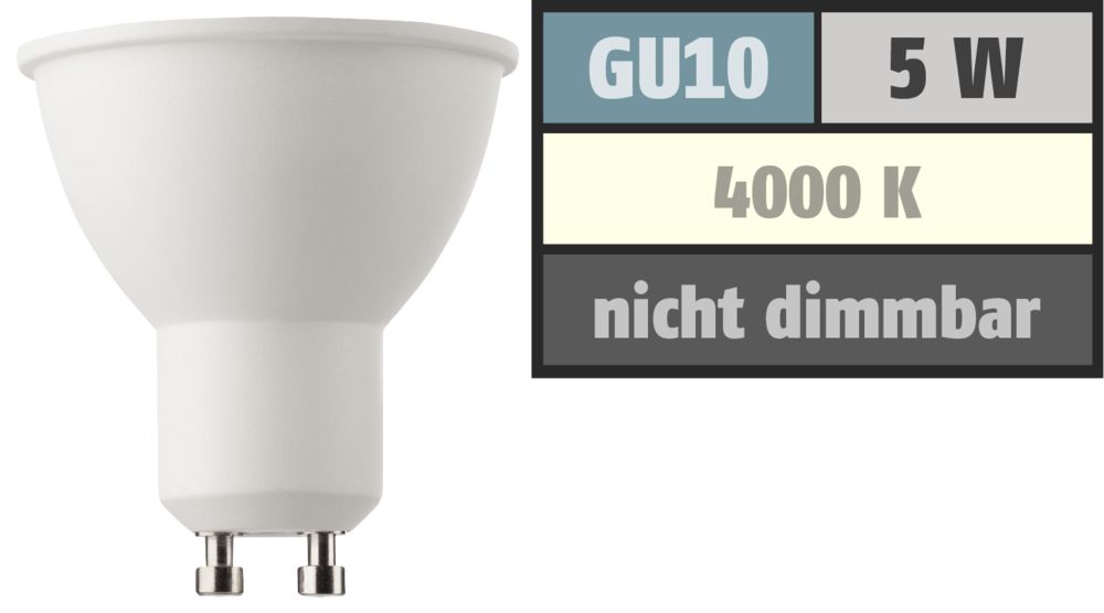 We offer you Muellerlicht ETT-1451823 LED spotlight GU10, 5W, 345lm, 4000K, neutral white always at the best possible price. We can give you a discount of 2% on Muellerlicht ETT-1451823 LED spotlight GU10, 5W, 345lm, 4000K, neutral white if you choose payment in advance on ordering.