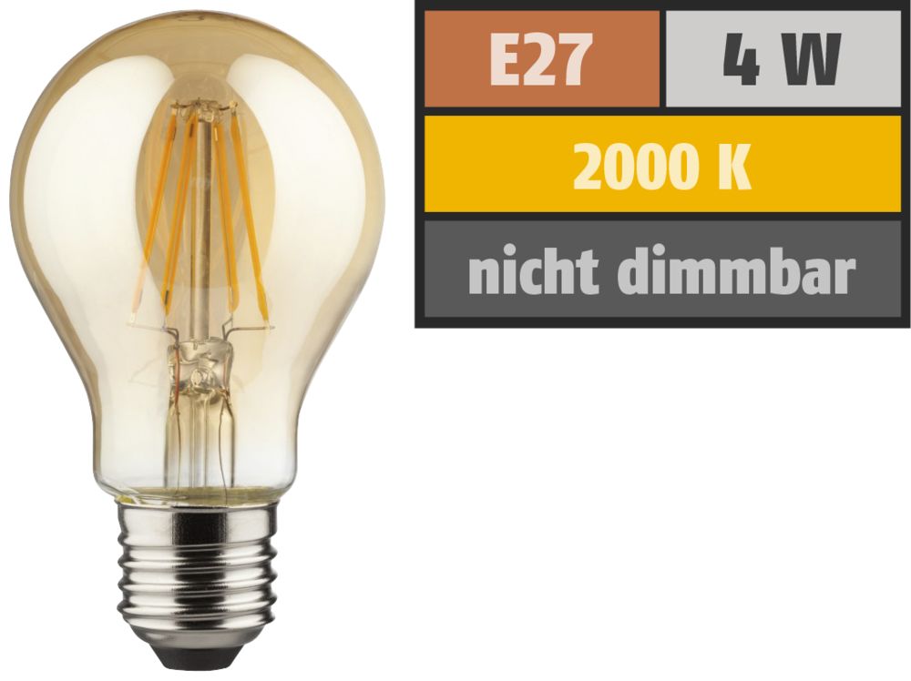 The article Muellerlicht ETT-1451898 LED filament light bulb, E27, 4W, 400lm, 2000K, warm white, gold is currently in stock