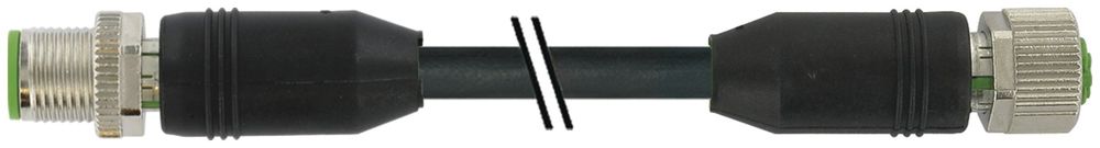 M12 male 0°/M12 female 0° PUR 8x0.34 sw 3m