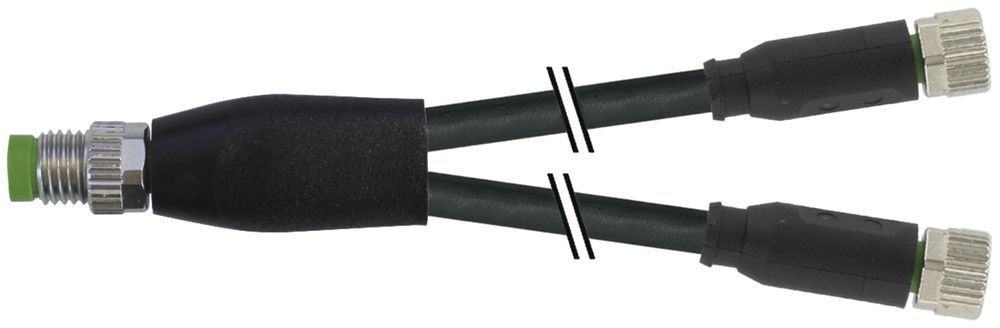 M8 male Y-distributor/M8 socket 0° PUR 4x0.25 sw 0.3m