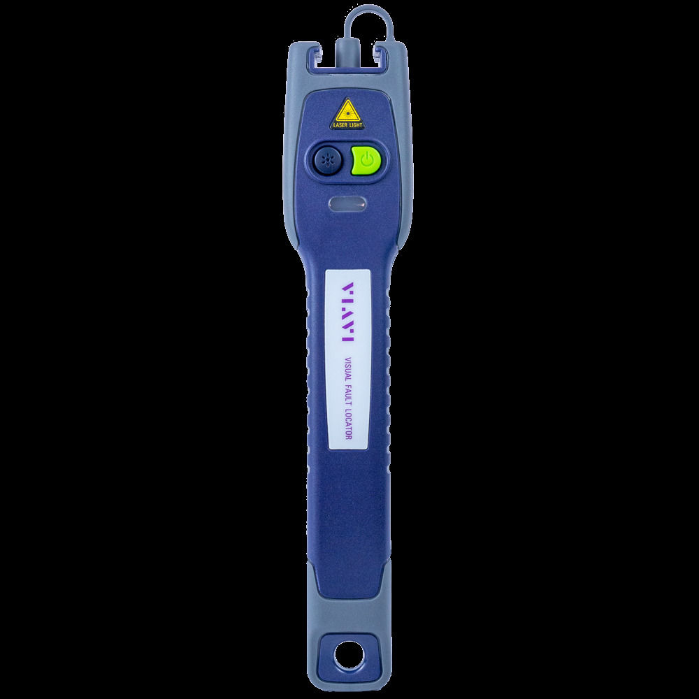 The VIAVI FFL-105 is a rugged visual fault locator that quickly and easily locates problem areas in fiber optic cables. By accurately locating fiber optic damage, technicians can efficiently diagnose, investigate and fix the problem. The VFL is also used for performing continuity testing and fiber optic identification.|The FFL-105 is designed for convenient handling and portability. It is equipped with a 2.5 mm interface and is compatible with connectors such as SC, ST and FC, while the included 1.25 mm adapter allows connection to LC and MU connectors. The VFL emits a bright red laser beam (Class 3R), so the light emerging from the damaged fiber is clearly visible from a distance. The Continuous/Flash control button allows the operator to choose between continuous or flashing illumination.