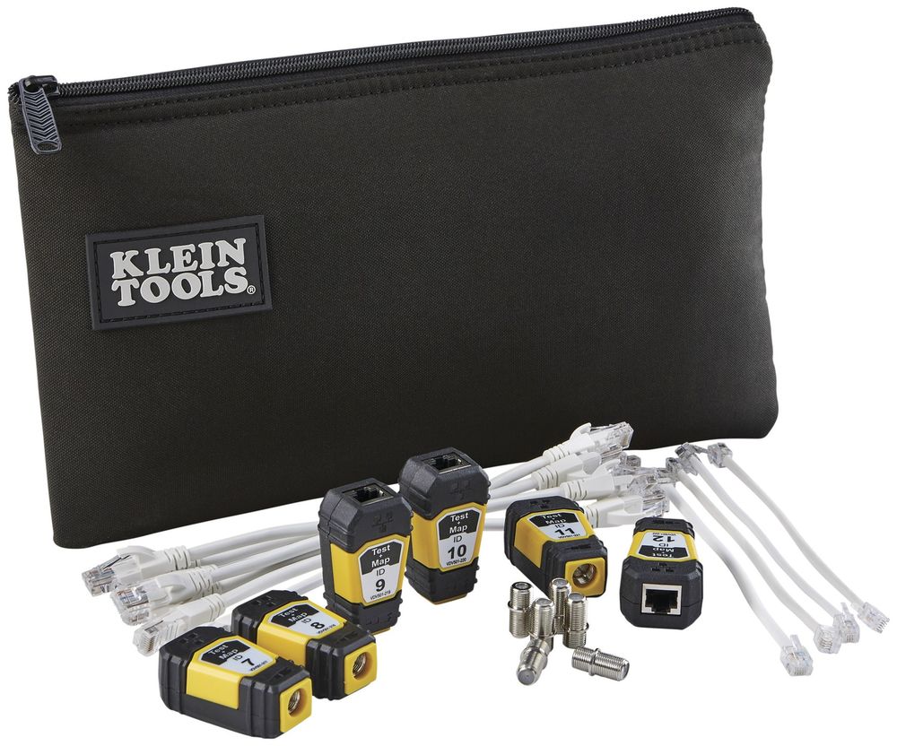 Includes: 6 Test-n-MapT remote units (#7 - #12), 6 female-to-female coaxial adapters, 6 RJ45 jumper test cables, 2 RJ11 jumper cables, 2 RJ12 jumper cables and a zippered pouch