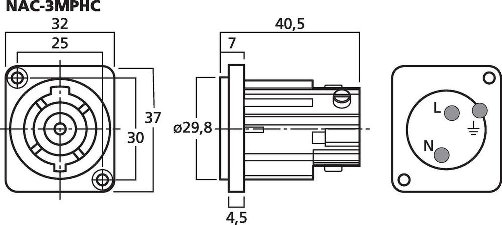 NEUTRIK NAC-3MPHC PowerCon connector mounting