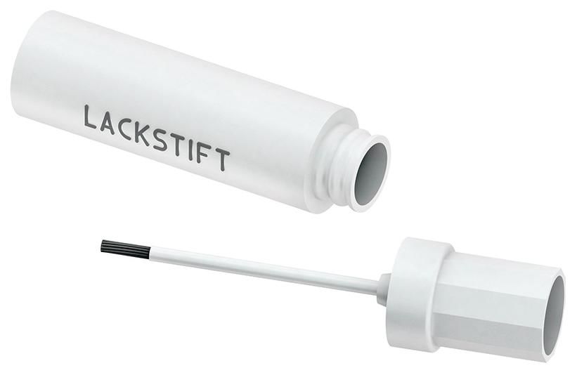 Paint pen in color white RAL 9010 color table according to the manufacturer's catalog, for repairing minor damaged areas on electrostatically powder-coated products.