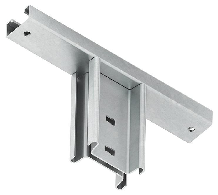 Head plate, clamping to the horizontally extending beams of steel structures for the production of suspended supports system I 80 / ... route of the cable runs parallel to the carrier, including dip galvanized share moderate mounting accessories, with HSKS ... and HK 610/...F must be ordered separately, dip galvanized to DIN EN ISO 1461.