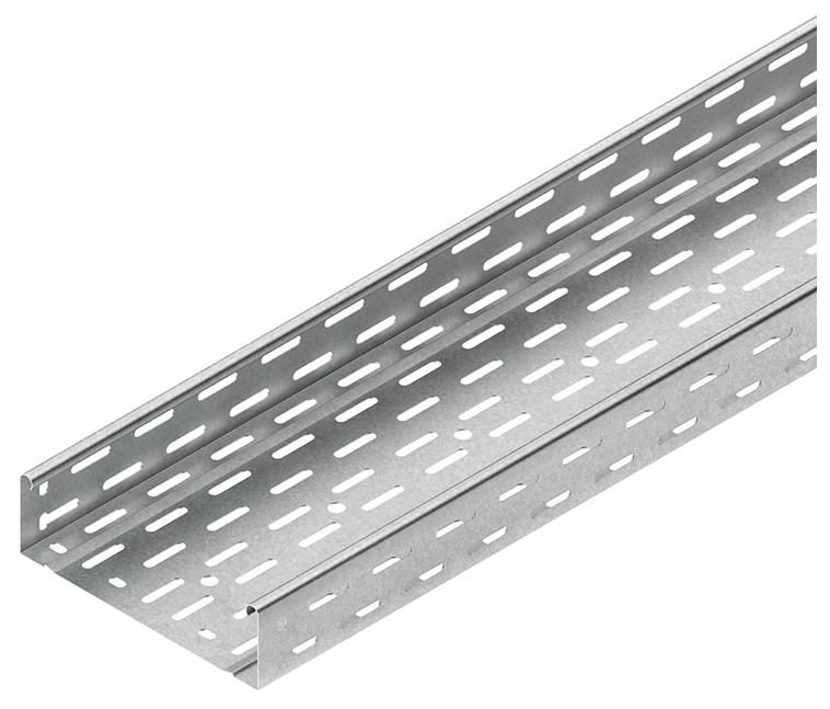 cable tray according to DIN EN 61537, with staggered bottom and side perforation, uniform beads in the soil provide by latching the screwless connector RVC 60 with the side bars for a quick positive longitudinal joint, galvanized to DIN EN 10346, including two screwless RVC connector 60 Dimensions H x W: 60 x 200 mm