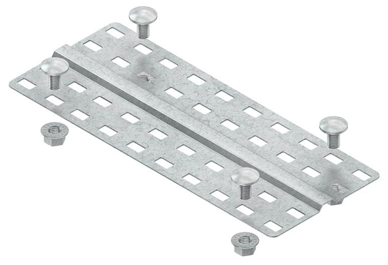 joint plate, for cable trays with soil beading without connector RLC ... OV, with continuous Befestigungsperforation, galvanized to DIN EN 10346, required for soil stabilization of the cable tray at butt joints in connection with connector RVC 60/2, including share-moderate fixing accessories. For use in the functional integrity please follow additional rules!