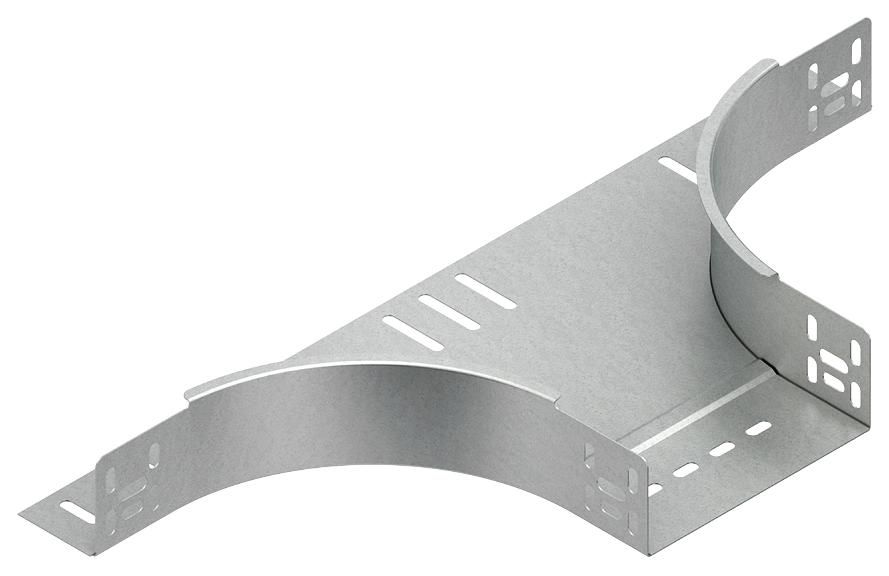 Mounting tee for cable trays, for the inexpensive production of 90ø T-branches and junctions, depending wide in the main direction, galvanized to DIN EN 10346, with integral splice plates and share moderate fixing accessories. For use in the functional integrity please follow additional rules.